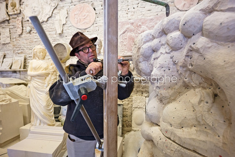 J'ai accompagné le sculpteur Marc Deligny et son équipe pendant les trois étapes des travaux: Moulage et modelage de la cheminée à Bourg-Charente - Travaux de sculpture à l'atelier Deligny - Installation de la cheminée entièrement reconstituée au château de Bouteville (étape à venir...).